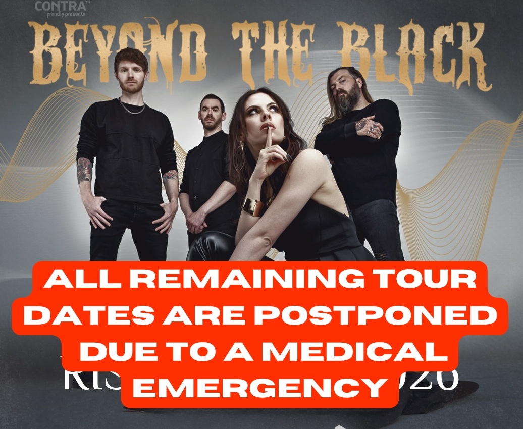 BEYOND THE BLACK heeft op hun socials aangekondigd dat alle nog resterende tourdata in Hamburg, Antwerpen, Oberhausen en Nijmegen worden uitgesteld wegens een medisch noodgeval. “Vandaag moet Chris, onze gitarist, een spoedoperatie ondergaan vanwege een netvliesloslating, wat betekent dat hij enkele dagen in het ziekenhuis moet blijven”, luidt de verklaring. “Er bestaat een reëel risico dat hij zijn gezichtsvermogen verliest en zijn gezondheid gaat natuurlijk voor!”