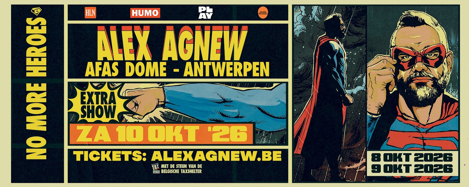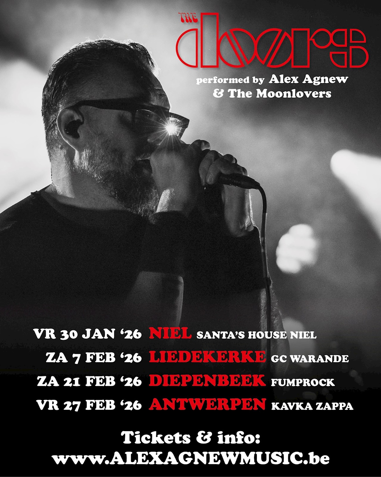 Alex zit verder niet stil. Met de Moonlovers is hij nog diverse keren te zien op de Vlaamse podia waar ze samen The Doors eren en dat blijft nog steeds de moeite. Verder staat hij ontzettend veel op de planken als comedian, dat in voorbereiding naar zijn ‘No More Heroes’ show die hij op 8, 9 en 10 oktober brengt in het Alex Fucking Agnew Stadium, ook wel bekend als de AFAS Dome. Drukke tijden dus en bovendien allemaal de moeite waard. Tickets voor al dit leuks vind u in onderstaande links en voor WTTLA kan je terecht brij Streamz.