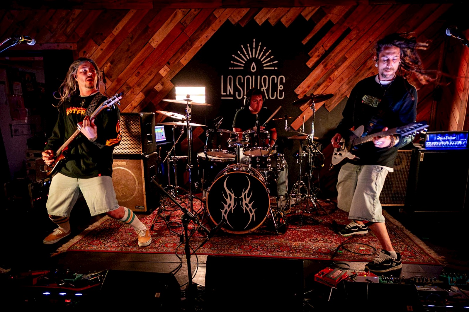 HOPE AS A WEAPON is een al even jonge Belgische alt‑metalband die afgelopen maanden behoorlijk wat bekendheid verwierf in de Waals-Brusselse scene. Gerezen uit de as van Beyond Horizons verrassen ze meteen positief met een gelaagde mix van moderne metal, nu‑metalhooks en emotioneel geladen melodieën, gelardeerd met uitstekende zang die nu eens lieflijk en dan weer bijtend gevaarlijk uitpakt. Zelf halen ze acts als Sleep Token, Bad Omens en Bring Me The Horizon aan als inspiratiebron, maar wat voor ons telt, is de solide eigen sound die ze daaruit smeden. Met singles als ‘The Sword’, ‘The Anchor’ en ‘The Cross’ creëert het viertal een universum rond The Seeker, een zoekende figuur die balanceert tussen licht en duisternis. Angst, twijfel en verlangen sluipen schichtig langs de muren van La Source, terwijl de band schier moeiteloos de set ver boven het niveau van een doorsnee jonge band uittilt.