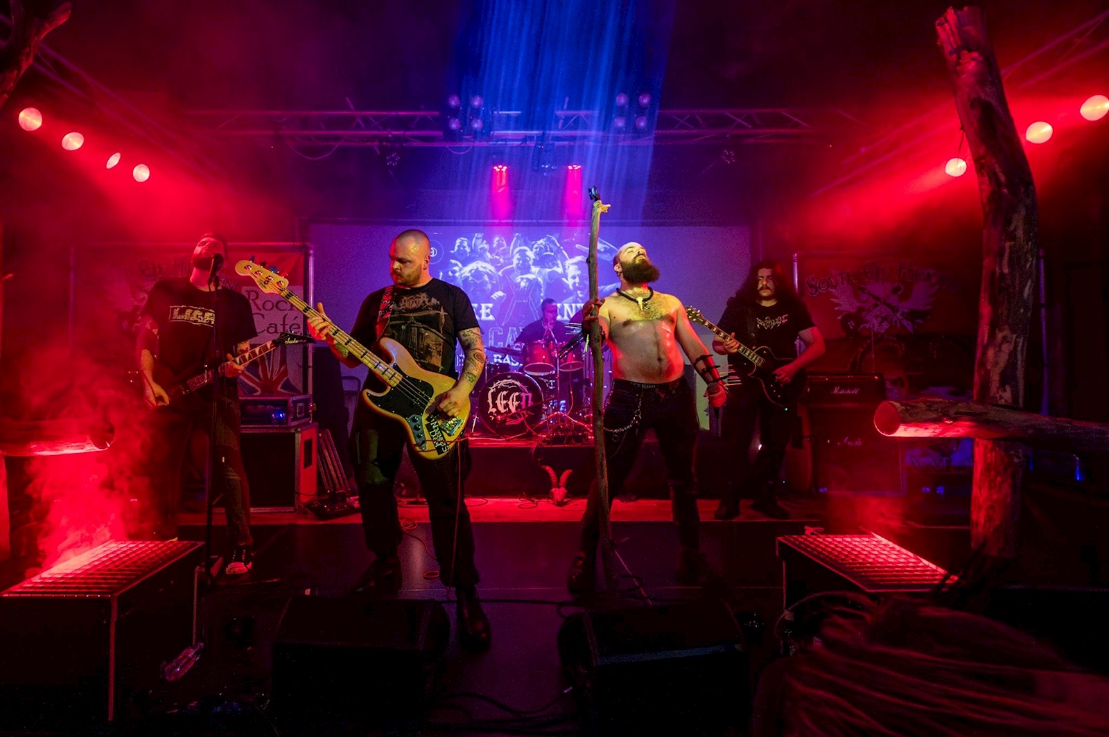 CATHARSIS uit Tongeren en Mol zette er meteen de beuk in en ramde de zaal vakkundig tegen de grond met rauwe, oldschool death metal zonder omwegen. Onder leiding van frontman Larz pootte de band een aangenaam geluid neer dat het midden houdt tussen brutaliteit en melodieuze, soms catchy klinkende riffs, gelardeerd met technisch verzorgde bas- en drumklanken. We kregen een mooie doorsnede van Catharsis’ repertoire met nummers van de EP ‘M-VIII B.C.’ en nieuw werk van het eerste full album dat in het najaar van 2026 op de releaseplanning staat. Hoewel de sound smerig vet bleef – we kregen zelfs een death metal ballad voor de kiezen - viel op hoe gecontroleerd en strak de band speelde.