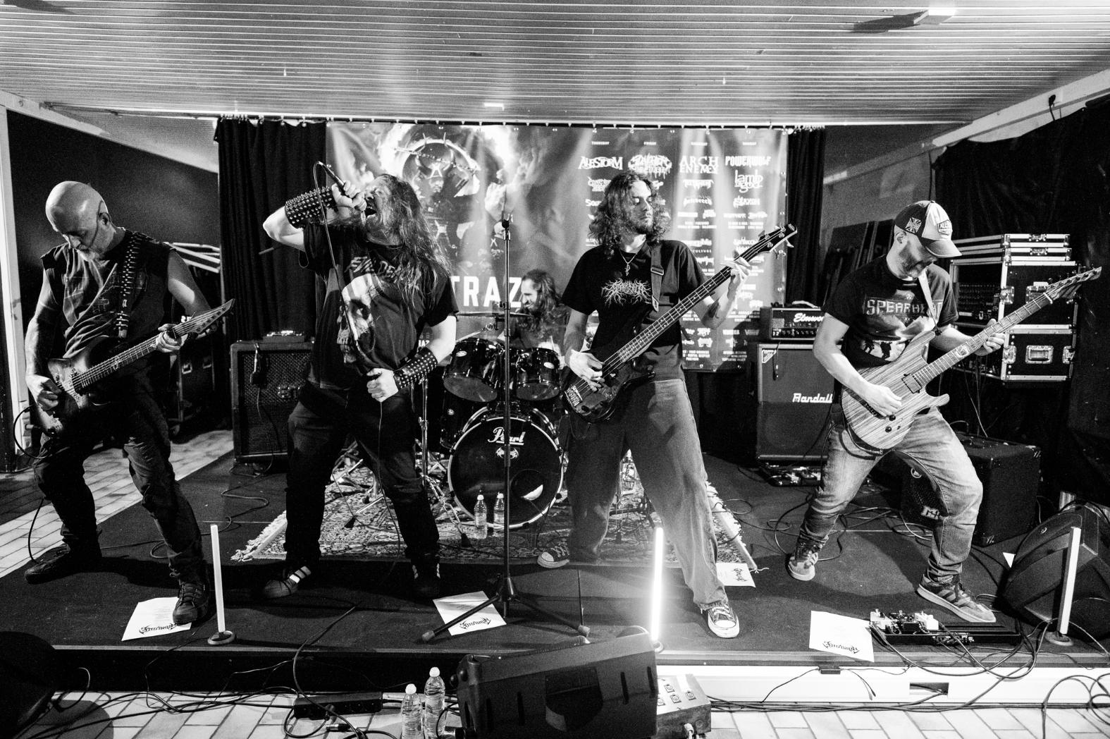 In zowat elke halve finale duikt een op het eerste gezicht ‘vreemde eend’ op die toch de bakens weet te verzetten. In Zwalm was dat GRIMVILLE, niet alleen de enige niet-Oost-Vlaamse band - al ligt Tielt nu ook weer niet zover uit de buurt - maar ook de enige act die de zaal resoluut een andere (metal)richting uitstuurde. Old school death metal mag dan momenteel niet de meest populaire keuze zijn, de band sloeg in De Giraf serieuze nagels met nog serieuzere koppen. Wat meteen opviel, is dat de sound Grimville niet verzandt in een ondoordringbare muur van geluid. Orde in de chaos, al beuken de songs er ongenadig agressief op los en wordt de ‘klassieke’ 90’s death metal af en toe geserveerd met een knisperig black randje. Jonge metalheads en oudere krijgers staan hier zij aan zij op het podium en dat zorgt voor een mooie mix van snoeiharde riffs met een toch voldoende fris aanvoelende wind, al is ‘storm’ een beter woord voor deze onverschrokken lading metal.