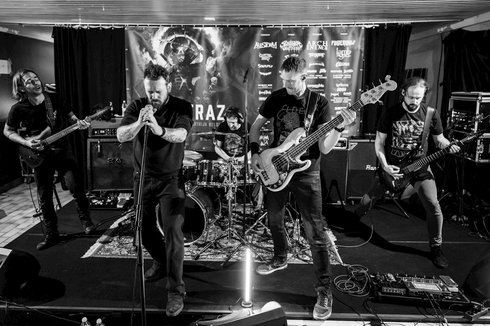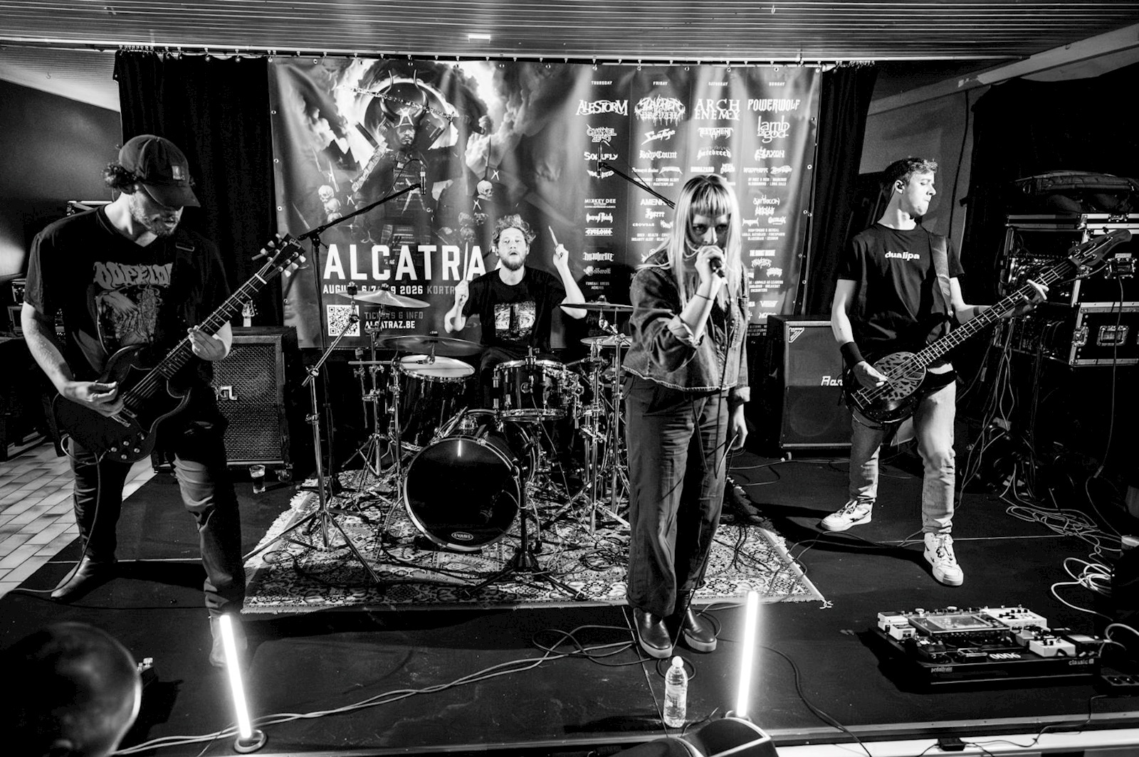 De eerste band heeft doorgaans weleens last van een halflege zaal, maar dat was (gelukkig) niet het geval toen STORIES FROM THE LOST de eerste gitaartonen de wereld instuurde. Het aantal ALCATRAZ-T-shirts bleek in de club amper te tellen en we lieten ons dan ook goed omringd onderdompelen in de dreigende post-metal-sfeer die de band uit het naburige Zottegem van meet af aan wist te creëren. De heren hebben er de afgelopen jaren een meer dan degelijk parcours opzitten, met het recentste album ‘Posthuman’ als kers op de taart. Een paar jaar geleden wisten ze ons op Garagerockt niet helemaal te overtuigen; in De Giraf deden ze dat wel, met een zorgvuldig opgebouwde set die een intense, meeslepende sfeer mooi combineert met strak samenspel en ons vooral opviel door de prima vocals.
