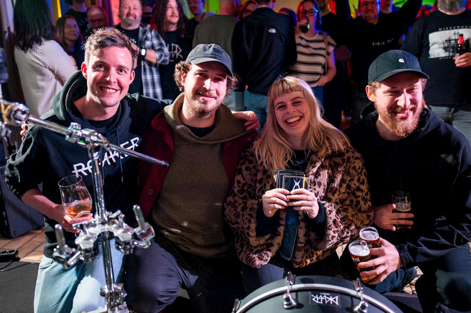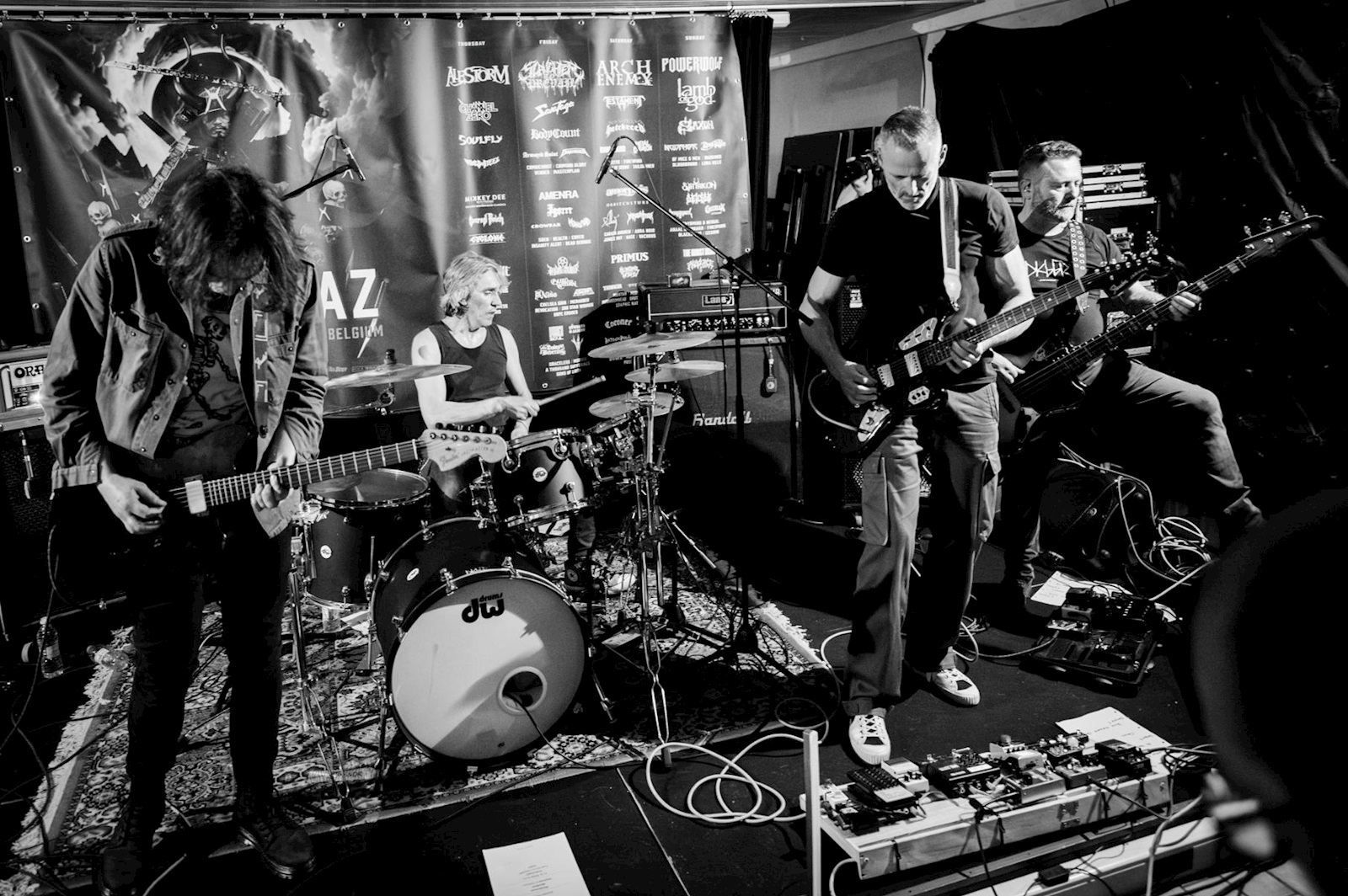 DICK DIGGLER woont bij wijze van spreken om de hoek van de zaal en dat was duidelijk te merken aan het grote aantal supporters dat naar voren drong toen het viertal aan de slotset van vanavond begon. Het predicaat ‘vreemde eend’ was eigenlijk ook wel een beetje van toepassing op de atmosferische lading post-metal die de band standvastig ten gehore bracht. Dick Diggler doet het namelijk volledig instrumentaal en dan moet je stevig in je schoenen staan om de aandacht vast te houden. En dat was vanavond zonder meer het geval, mede dankzij de technisch hoogstaande precisie waarmee de heren hun instrumenten laten spreken. De band wegzetten als de zoveelste post-metalact in de rij is verkeerd. Regelmatig maken de bandleden een uitstapje richting doom met een sludgy ondertoon, al tekent af en toe ook een sneller stukje stoner present. Vooral naar het einde toe zorgde dat voor headbangende taferelen die we bij dit soort bands (te) zelden zien. Mooie afsluiter van een fijne avond!