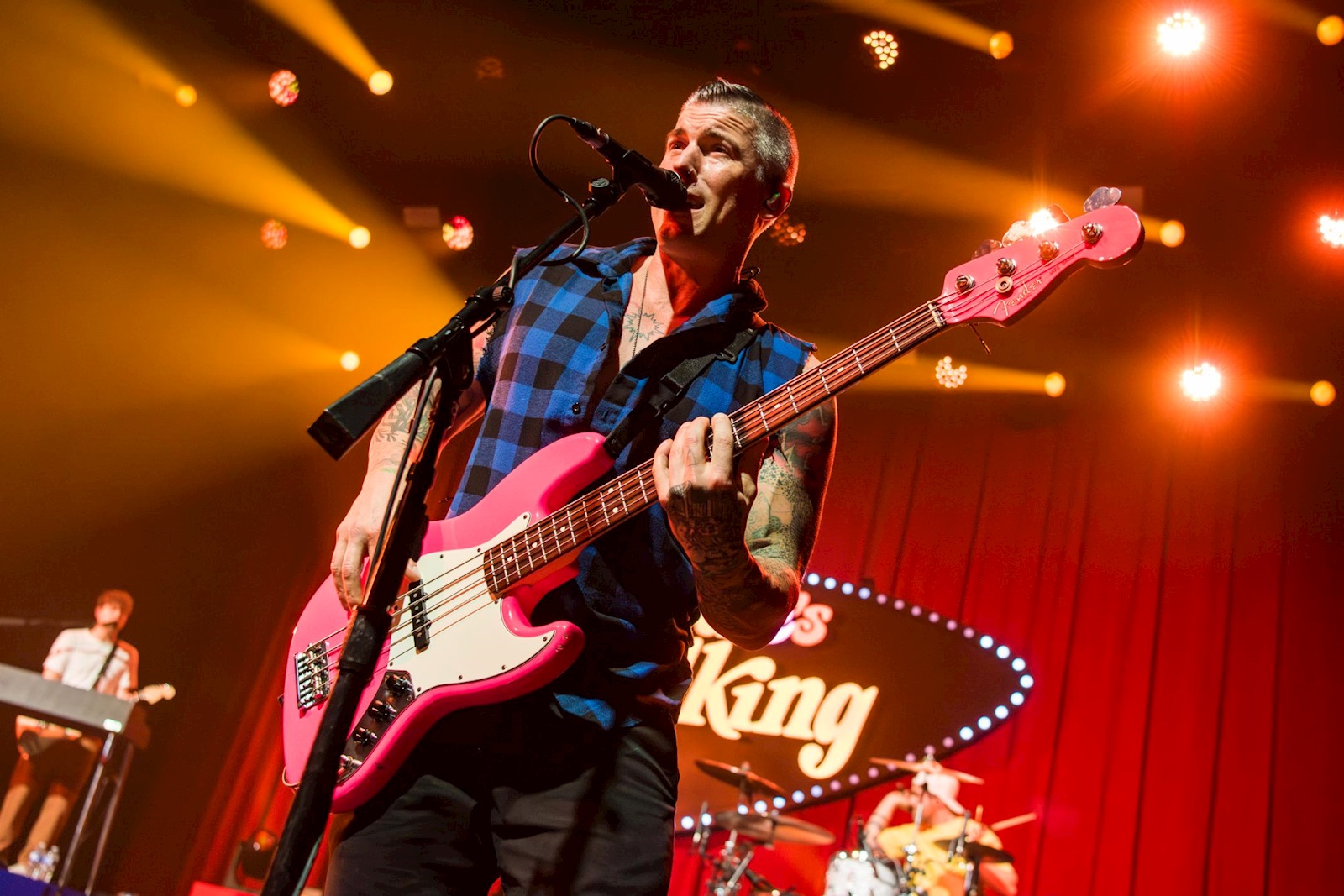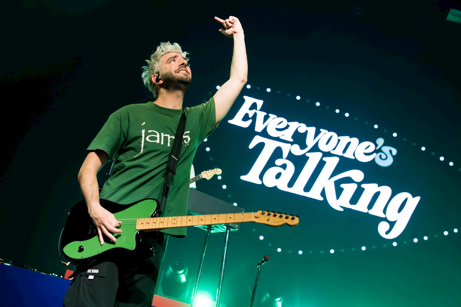 Op het podium heerste er duidelijk ook een ontspannen sfeer, want zanger/gitarist Alex Gaskarth, met petje achterstevoren op zijn hoofd, kwebbelde er geregeld lustig op los tot hij zelf zijn draad kwijt was, tot hilariteit van iedereen. De attributen op het podium en showelementen bleven beperkt tot een minimum, met een mooie lichtreclame van ‘Everyone’s Talking’ als banner die wisselde van kleur en enkele dansende opblaaszuilen bij slotsong ‘Dear Maria, Count Me In’. Frontman Alex liet zich voorts opvallen met een conversatie over Pokémon-kaarten die hem cadeau werden gedaan door een fan op één van de eerste rijen en zijn dansact vooraan op het podium toen hij tijdens de outro ‘I Wanna Dance With Somebody’ de fans ging groeten.