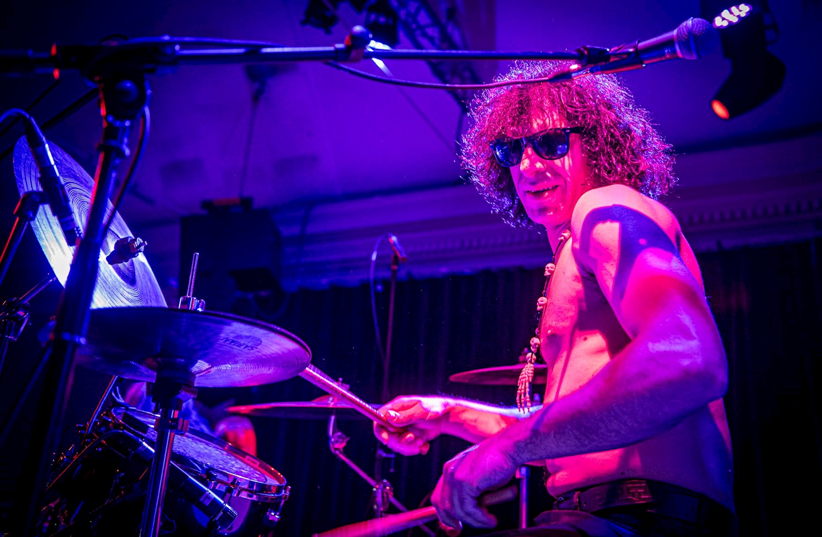 Laat er wel geen misverstand over zijn, Protrudi kan gitaar spelen. Dat bewijst hij meermaals deze avond. De band kan ook putten uit een heel arsenaal aan songs, al staat de avond in het teken van veertig jaar ‘Lysergic Emanations’. Dat debuutalbum is wat hen op de kaart heeft gezet. Wie er ook een hoofdrol speelt in de muziek, is toetsenist Nico Secondini. Hij heeft de tijd van zijn leven en vormt samen met Rivagli de sterke ruggengraat van de sound van de band. Die laatste is een ongeleid projectiel met Animal-allures. Dat bewijst hij door tijdens het slotnummer van de reguliere set, ‘Epitaph For Head’, zijn baspedaal kapot te stampen. Protrudi breekt het nummer af, zegt ons dat het een vreemde avond is vol onverwachte wendingen en Rivagli zegt dat het ook wel zonder kan. We krijgen een versie waar de grote tom de basdrum vervangt. Het klinkt geweldig, zoals eigenlijk al de hele avond.