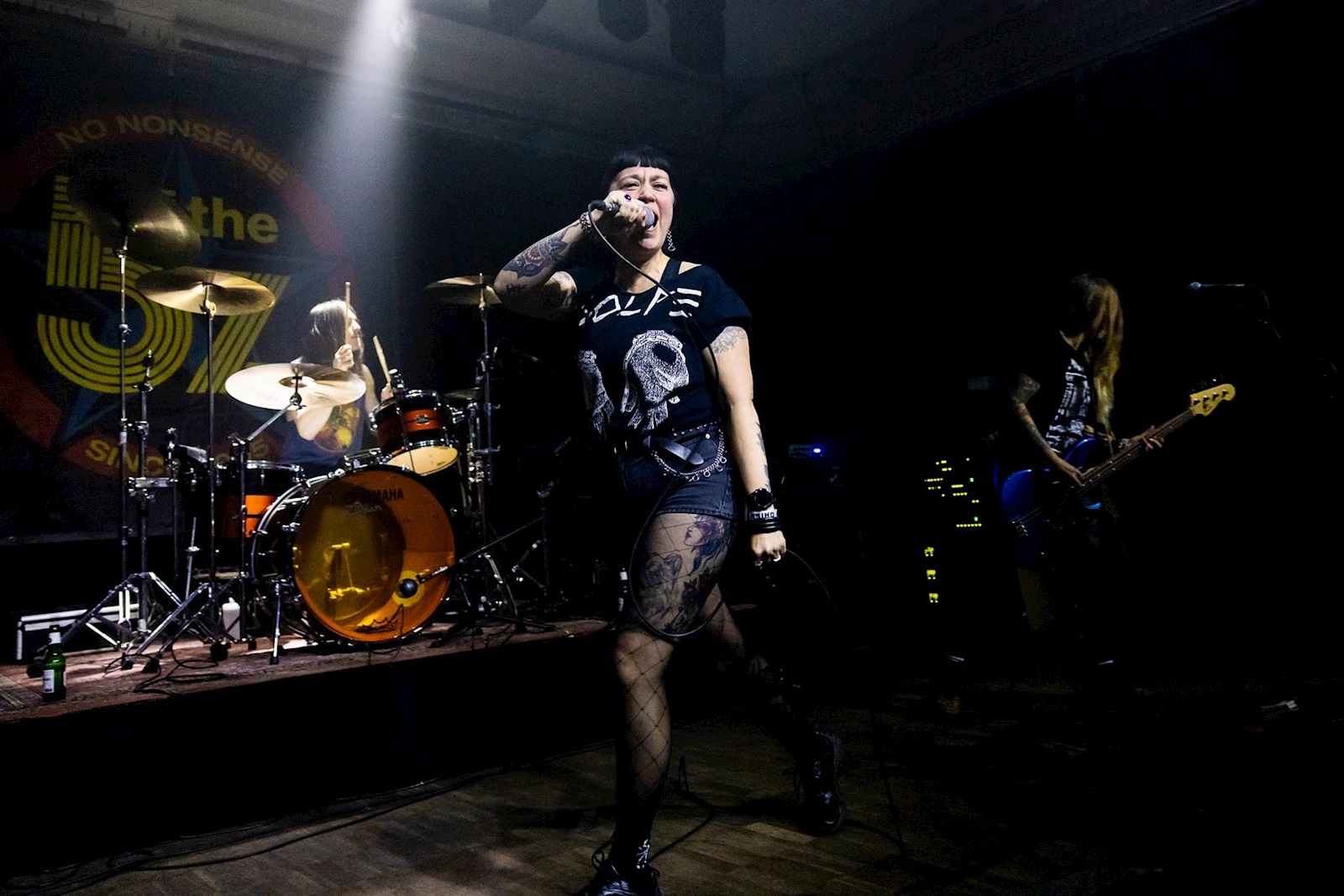 Rond de klok van elven was het dan eindelijk tijd om het hoofdgerecht aan te snijden. Al tijdens de soundcheck kwam er beweging in het publiek, je voelde al aan je water dat FUNERAL DRESS (9) nagels met koppen zou slaan. Setopener ‘Punk's Back In Town’ ging er meteen in als de spreekwoordelijke zoete koek. Het concert in Sint-Niklaas stond voor een stuk in het teken van de re-release van ‘Hello From The Underground’ uit 2006, nu voor de eerste keer op (bloedrood) vinyl. ‘Burn The City’ uit die plaat klinkt ook na bijna twintig jaar nog altijd heerlijk agressief. Het daaropvolgende ‘Death And Glory’ bevestigde de onverwoestbare status die FD ook na veertig jaar (!) aan de top van de internationale punkbeweging geniet.