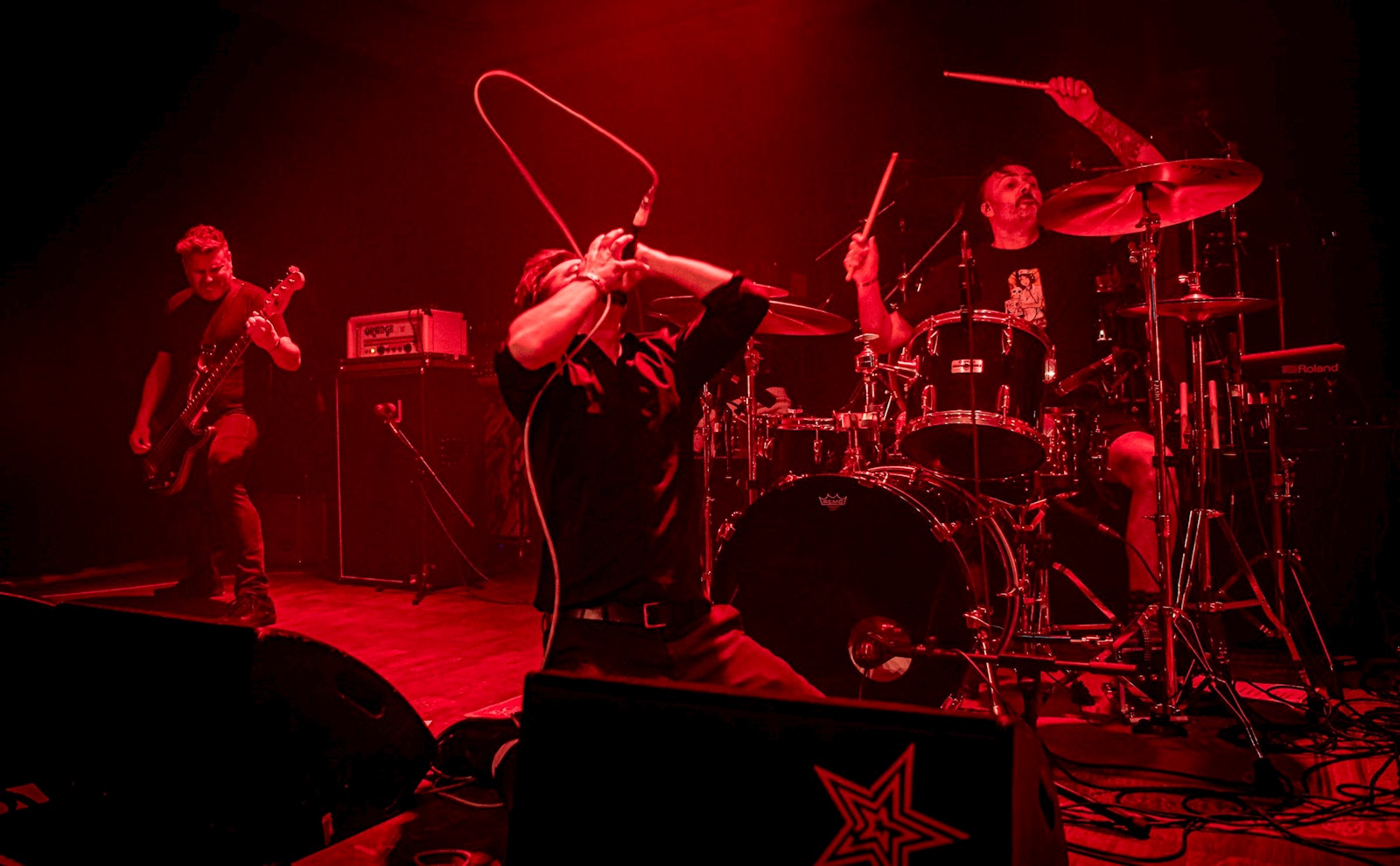 Terwijl buiten de laatste zonnestralen de mensen nog een beetje op het ruime terras van de concertzaal houden, wordt het duidelijk dat het ook vandaag weer een bijna vol huis wordt. Een gezellige drukte zwelgt aan en de heren van ROTZAK (6) maken zich op om de boel op te warmen. Een klinkende naam is de groep nog niet; toch hebben ze met ‘Step Back, Gushing Eggheads’ en ‘Headcrush’ twee albums op hun conto staan die bij de jongere generatie hardcorefans best in de smaak vallen. Ons valt onmiddellijk de tomeloze energie op die de frontman tentoonspreidt. De man smijt zich volledig en ligt bij de tweede song al op de grond terwijl hij de screams uit zijn longen blijft persen en ons aan Chino van Deftones doet denken. Knap, maar tegelijk heel veel chaos.