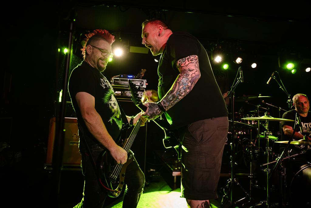 De veteranen van THE VARUKERS (8) konden al op heel wat meer bijval rekenen. Deze Britse schreeuwpunkers draaien al bijna een halve eeuw mee en zijn nog steeds behoorlijk pissig op alles wat ook maar naar autoriteit riekt. Aangevoerd door Anthony ‘Rat’ Martin, een gezette zestiger met een dubbele hanenkam en tevens oprichter én enig origineel lid, ragt men luid en behoorlijk strak doorheen een flink aantal songs uit hun gehele carrière. Echt veel kenden we er niet van, maar wat we zagen (en hoorden), beviel ons, en een groot deel van het publiek, opperbest.