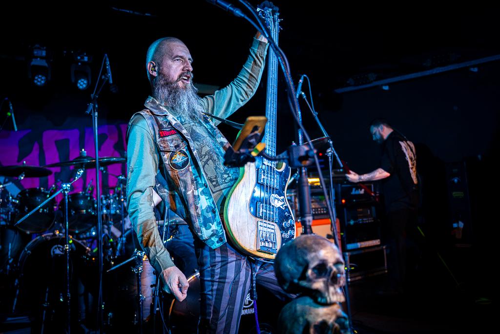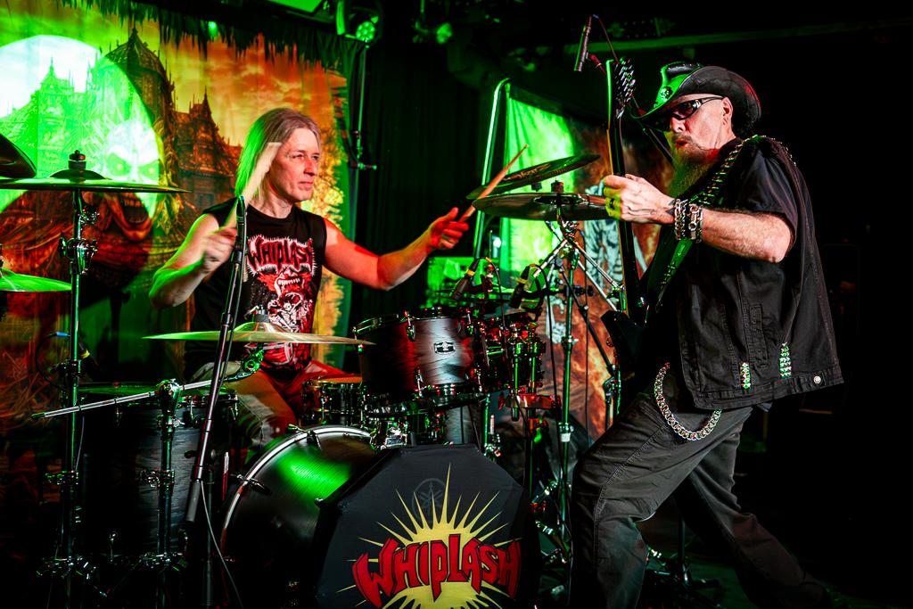 Het duurde dus even voor Whiplash het publiek terug in beweging kreeg. Het uptempo ‘The Burning Of Atlanta’ deed dat halverwege de set toch prima en de thrashers kwamen toch los in een bescheiden, schuivende pit. De band putte in zijn verkorte set wel hoofdzakelijk uit hun debuutalbum ‘Power And Pain’ uit 1986 en dat werd gesmaakt. Songs als ‘Spit On Your Grave’, het uptempo ‘Walk The Plank’ uit het tweede album en afsluiter ‘Nailed To The Cross’ werden toch door een schare fans luidkeels meegebruld. Een ouderwetse gitaarsolo tussen de nummers door hadden we ook al lang niet meer gehoord. Uiteindelijk moeten we toegeven dat het ietwat scherpe, typische gitaargeluid van Portaro ons toch heel even een nostalgisch gevoel gaf. Niet kwaad na de langdurige, technische tegenvaller.