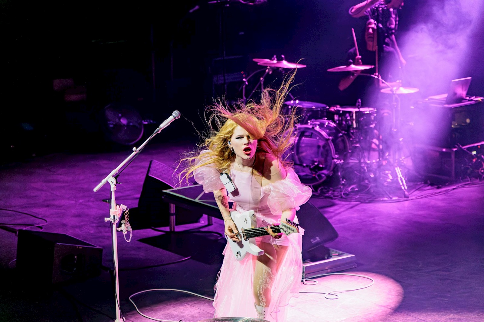 De zangeres/gitariste Karoline Rose Sun is van oorsprong Duitse, maar groeide op in Frankrijk. Het verklaart waarom ze vlotjes meerdere talen sprak met het diverse publiek in Brussel. Haar band SUN (7) bestaat verder nog uit een bassist en een drummer en ze verklaren zelf Brutal Pop te spelen. Die vlag dekte de lading wel, want pop en metal gingen hand in hand en lieflijke zang werd zonder enig probleem afgewisseld met bulderstem.