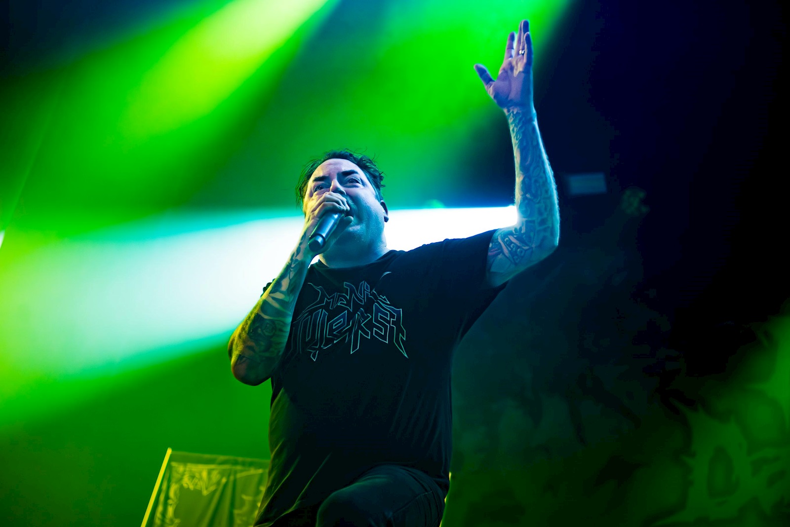 Zo krijgen we vanavond bepaalde hits niet te horen (geen ‘Hunters Will Be Hunted’ of ‘Combat’, bijvoorbeeld), maar krijgen we wel de oudere nummers ‘Armia’ en ‘The Martyr’s Blood’. Het nieuwe ‘Confounder’ heeft een bijna boogie-sfeer in z’n brutale gitaren verscholen zitten. Je moet Marcus Bischoff niet leren hoe hij het publiek moet bespelen. Ook gitarist Maik Weichert neemt soms het woord. Hij legt graag uit waarom bepaalde songs vandaag belangrijk zijn en wat de parallellen zijn met de situatie in Oekraïne. De man is geschiedenisleraar, dus neem maar notities. Ook vertelt Maik dat zonder de Belgische hardcore-scene en de bands Liar & Lenght Of Time er waarschijnlijk geen Heaven Shall Burn had geweest. Da’s nóg belangrijkere geschiedenis.