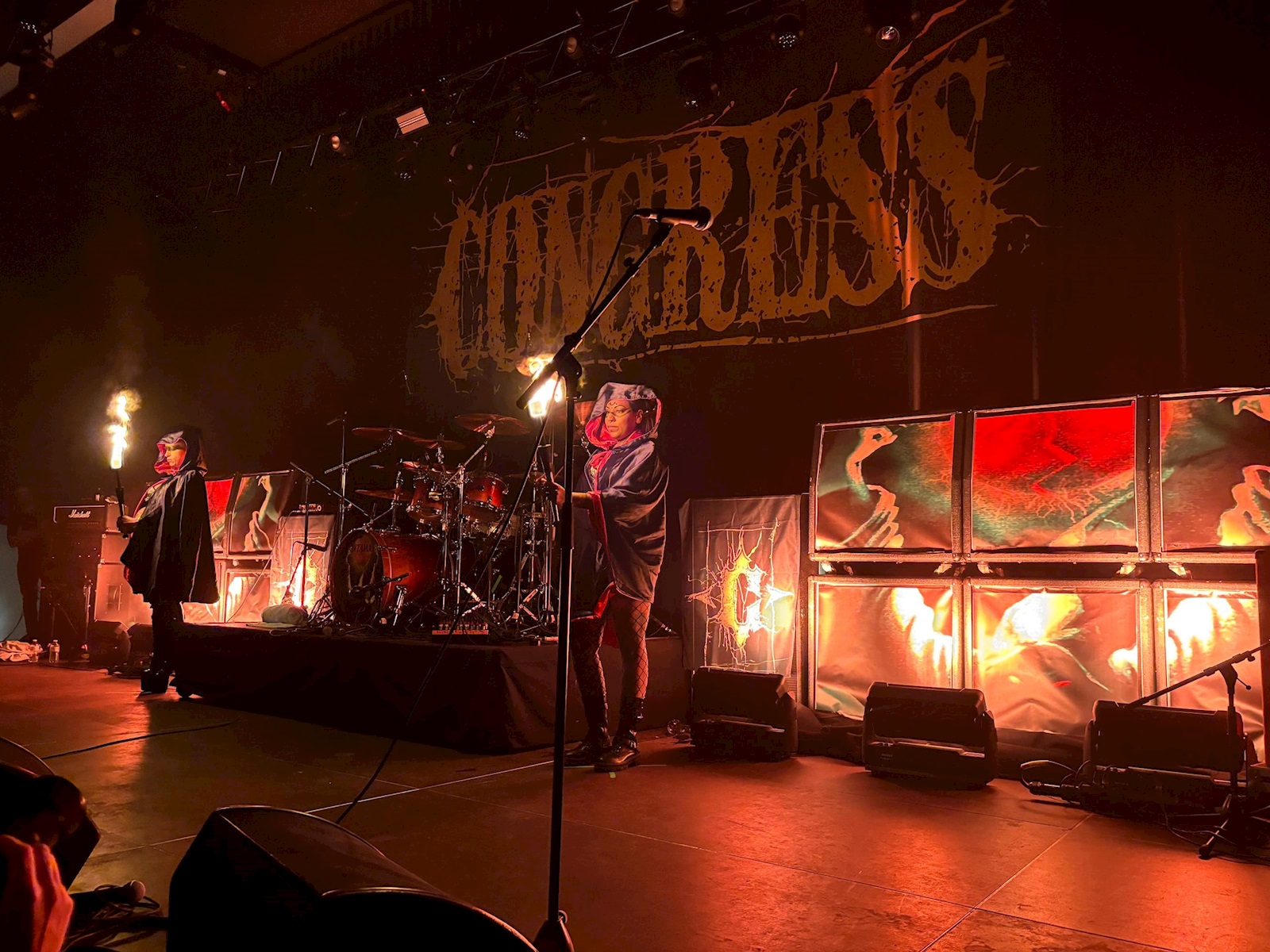 De podiumaankleding voor CONGRESS (8) mag dan misschien wat atypisch zijn voor hardcore, toch heeft het wel iets. De gitaarversterkers zijn mooi in het thema van ‘The Blackened Persistence’ getooid en ook de gigantische backdrop oogt indrukwekkend. Als leuk extraatje heeft de band zelfs voor twee vuurspuwers gezorgd. Of dat laatste echt nodig was? Voor ons alvast niet, laat de nummers voor zich spreken. En dat deden ze! Nadat we het jarige album integraal kregen, werd er ook tijd gemaakt voor enkele andere nummers. Zo was het leuk om ‘Under Pressure’ en ‘December’s Blackest Tears’ nog eens te horen.