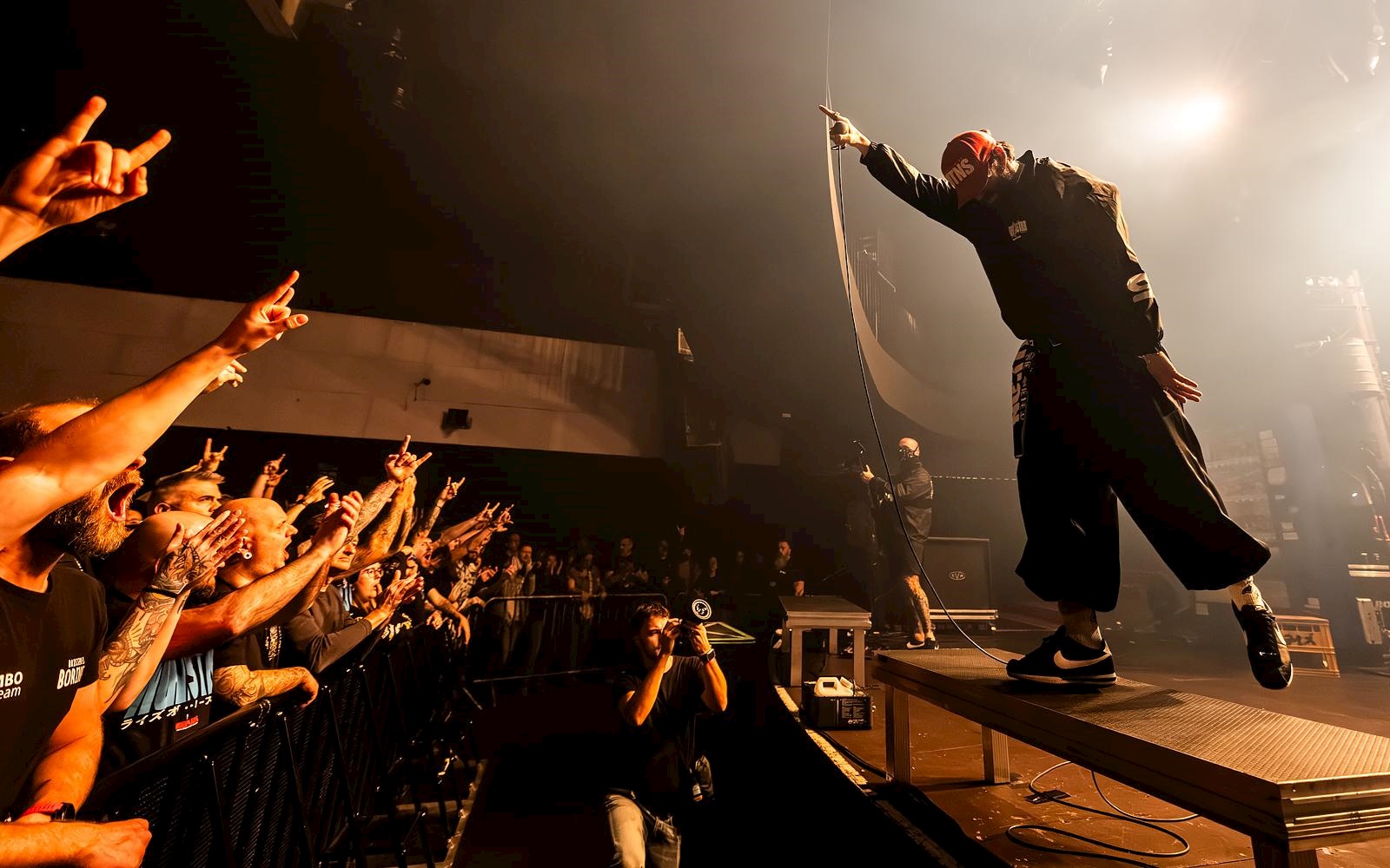 Het podium heeft zo een ware upgrade gekregen en gelukkig het geluid ook. Bij de hoofdact zit het eindelijk snor. Zo kunnen de vijf Fransen in hun coole, Japan-geïnspireerde klederklacht krachtig aanzetten met ‘Neo Paris’. Frontman Vithia spuwt z’n raps zoals steeds met dik accent en enorm veel goesting. De vlam zit in de pijp. ‘Showdown’ trekt dat meteen door. De zaal springt en mosht eindelijk uit volle borst.