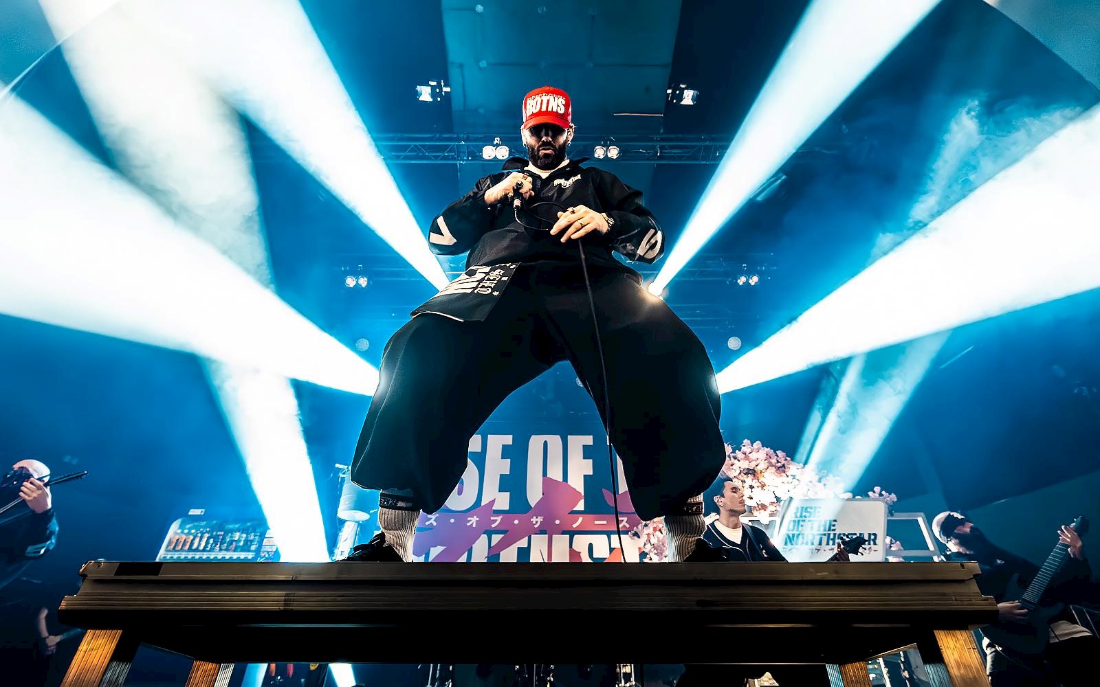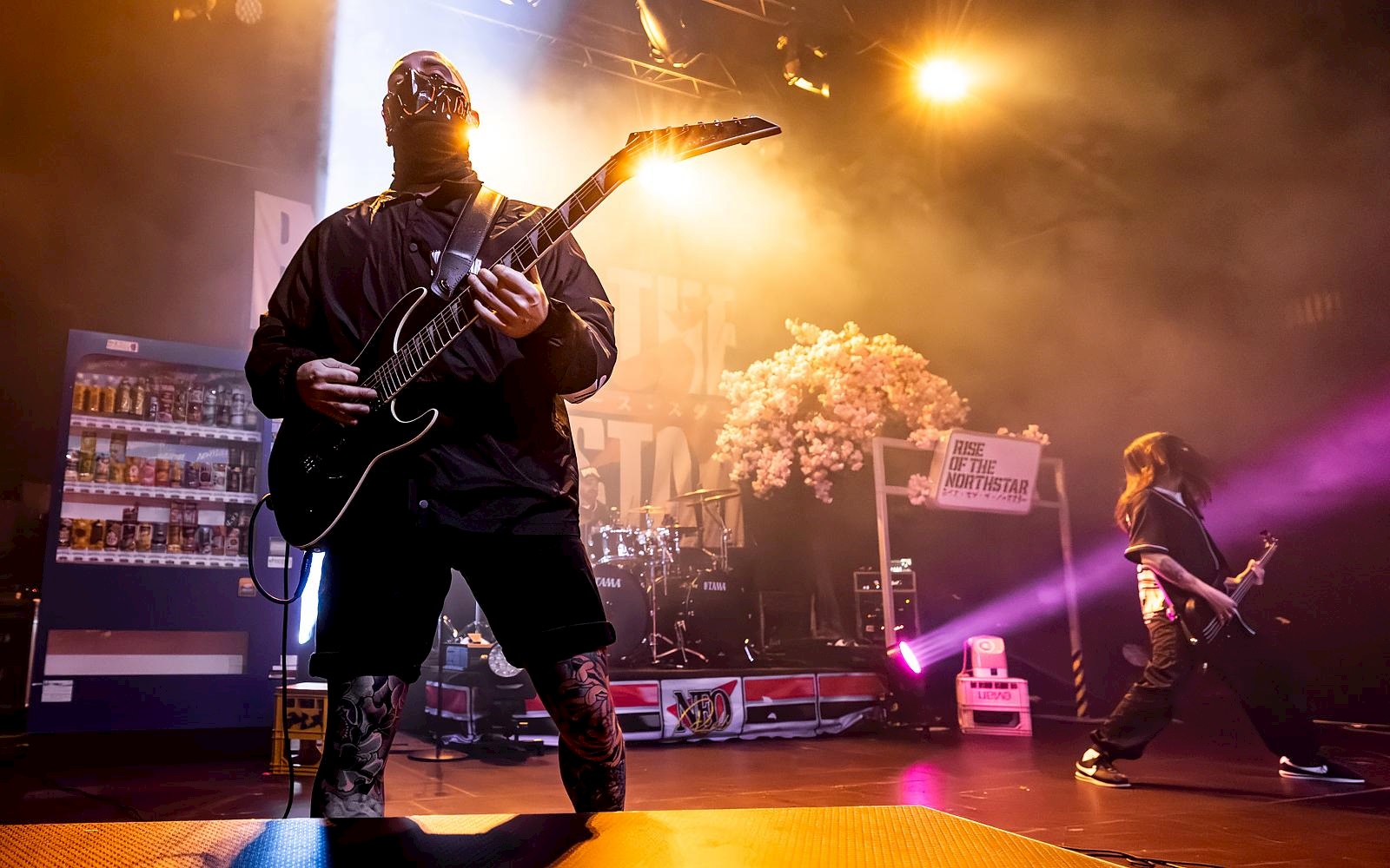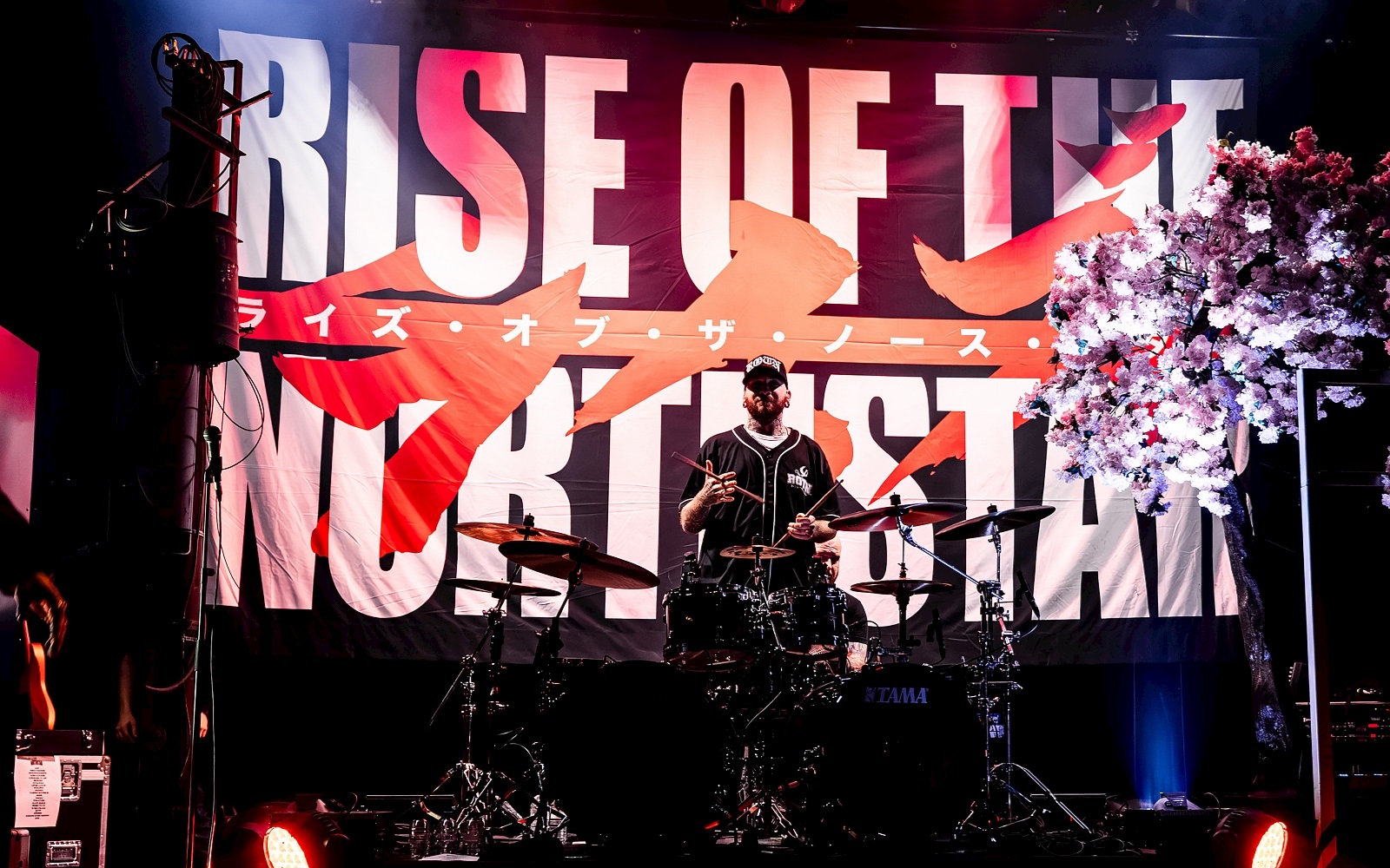 Het halfuur voor de headliner worden we met een ferme dosis J-pop alvast ondergedompeld in de Japanse sfeer. Ook het podium ondergaat een metamorfose. Wie zegt er dat je zonder vuur en videoschermen geen coole show op poten kan zetten? Wie claimt er dat je in een ‘kleinere’ zaal geen grote indruk kan maken? Aanschouw de setup van RISE OF THE NORTHSTAR (8) dan maar eens. Naast een knappe backdrop zien we ook een kersenbloesemboom waarvan de bloemen doorgroeien tot een soort van bushalte-bord. Aan de andere kant van het drumstel staat een lantaarnpaal vol Japanse stickers en boodschappen. Daarnaast een typisch Japanse drankenautomaat. Met nog wat extra spandoeken erbij is deze stage gewoonweg áf.