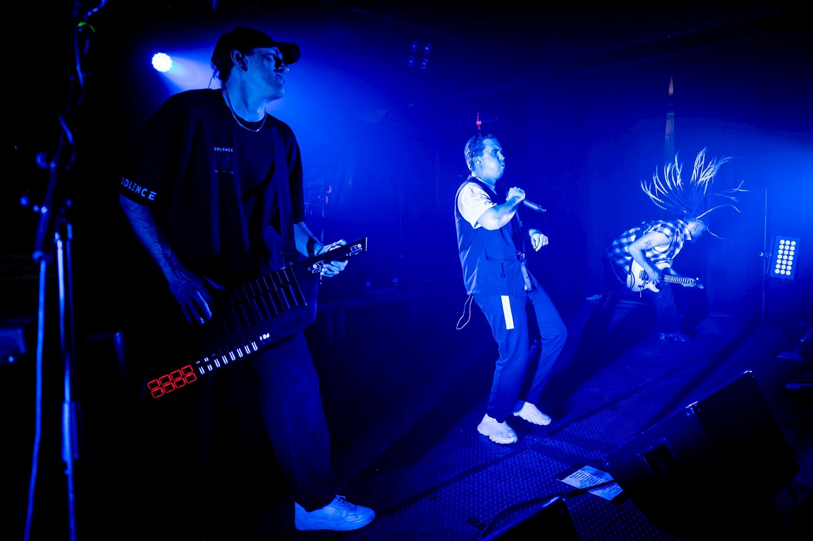 In de broeierige DVG Club is het vanavond makkelijk zweten met de Zweden van Solence. Dat is niet moeilijk aangezien hun zeer dansbare electronicore gemaakt lijkt om hoofden en heupen in gang te krijgen. Solence is de laatste jaren enorm creatief en efficiënt bezig: sinds hun debuutplaat in 2019 hebben ze vijf albums op zes jaar tijd gelost. ‘Angels Calling’ heet de nieuwste worp en wij hebben die call ook ontvangen. Kortrijk lijkt klaar voor een avondje headbangen en shaken.