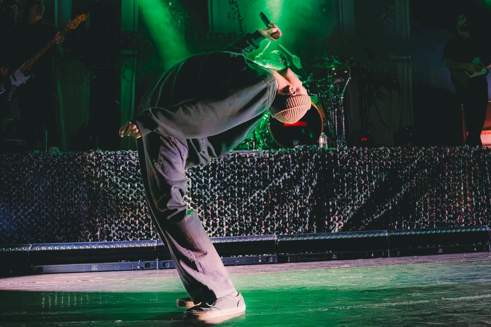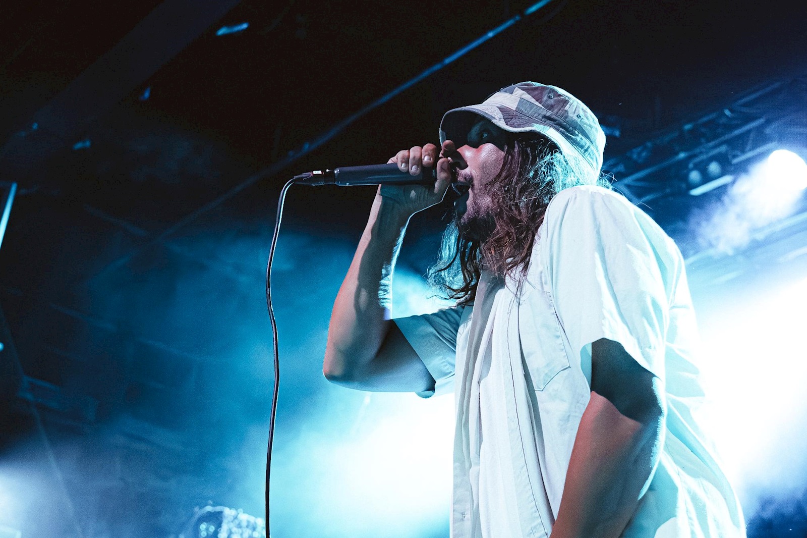 Zijn T-shirt met opschrift ‘Sad Metal’ is bijpassend voor de stijl. Als we achteraf bij de merchstand zien dat dit een bandshirt van hunzelf is dat ze verkopen, vinden we het iets minder cool. Je eigen merch on stage dragen: het blijft ons een dubbel gevoel geven. ‘In the spirit of vibes we will continue’ zegt frontman Elijah Witt. Wat later vraagt hij crowdsurfers, maar merkt hij snel dat die sfeer en willigheid nog niet in de zaal zit. Grappend verandert hij het geweer van schouder en zegt hij ‘Forget that, I don’t want to see anything at all!’ Ook dat lukt niet, want bij afsluiter ‘The Midnight Sun’ krijgen we dan toch een moshpit.