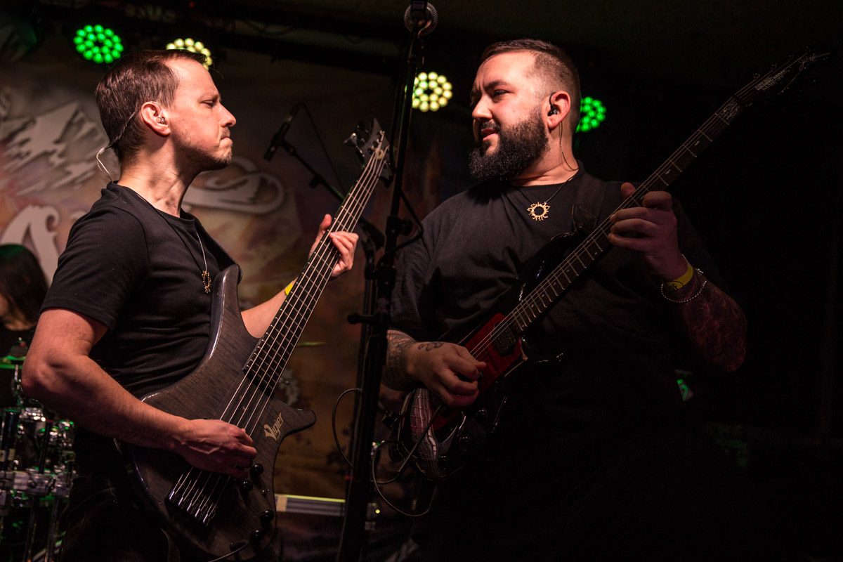 Door de afkomst uit Letland heeft SKYFORGER (9) al een bepaalde mysterieuze aantrekkingskracht, versterkt door een etnische trotsheid. Oudgedienden Peteris (gitarist) en de nonchalante Zirgs (bas) kunnen dan ook dertig jaar ervaring voorleggen. Het concert staat bijna volledig in het teken van het meest recente album ‘Teikas’ (2024). Maar liefst acht nummers ervan worden van een deskundige uitleg voorzien en vervolgens op ons afgevuurd. Deze verhalen tekenen de aard van deze Baltische volkeren. Een Lets folkinstrument dat men sporadisch gebruikt, is de kokle (een snaarinstrument enigszins verwant aan de Finse kantele).