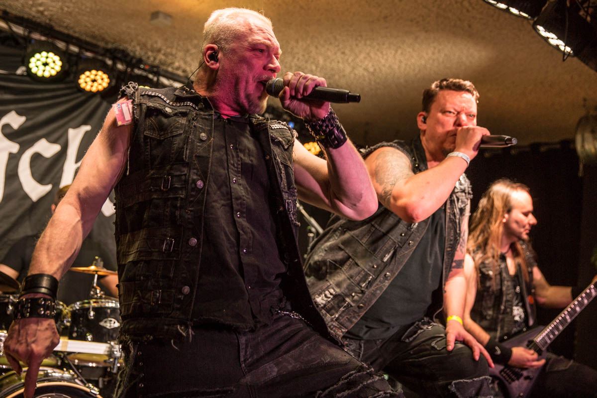 WOLFCHANT (8) treedt als tweede band op. Zopas heeft de Beierse Vikingband nog het nieuwe album ‘Echoes Of A Time Once Past’ uitgebracht en enige promotie voor dit hobbyproject is terecht. De band heeft als kenmerk twee vocalisten: voor de ruwe zang is dat Lokhi, voor de cleane, maar toch stoere stukken komt Nortwin aan de beurt (die je mogelijk ook van Rebellion kent). Geen bassist in de gelederen, wel uitstekende solo’s van beide gitaristen.