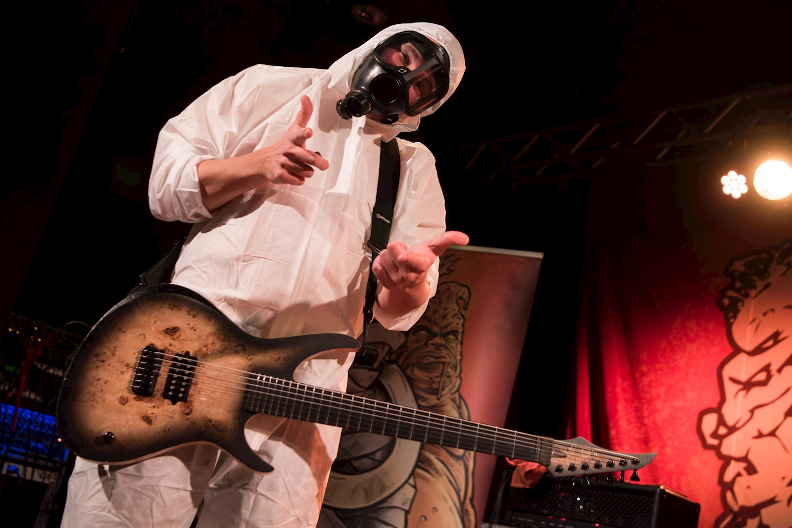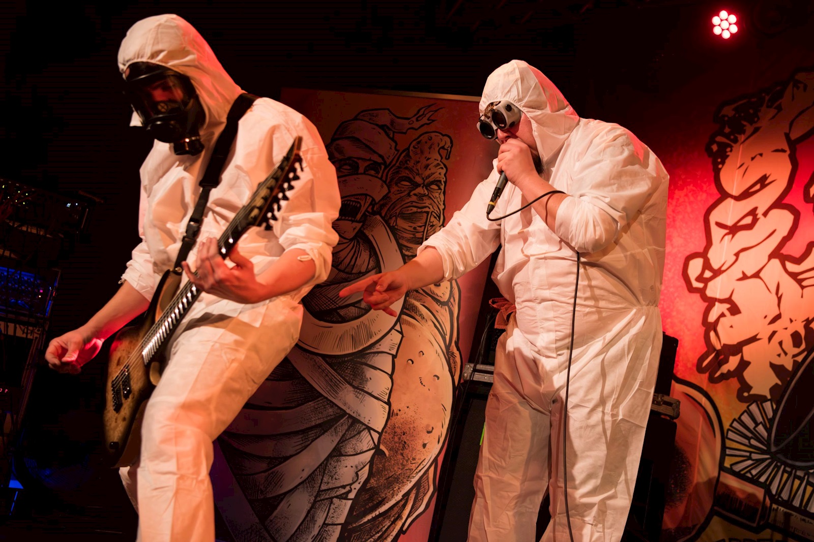 Het podium is knap bekleed met één grote en twee kleinere banners vol superhelden uit het Gutalax-universum. Die komen ook ter sprake in de songs ‘Buttman’ en ‘Diarrhero’. De riffs hier zijn écht wel lekker en weinigen kunnen hun heupen bedwingen. Het verhaal van hoe hun gitarist Kojas zichzelf helemaal besmeurde met elk mogelijk lichaamsvocht in een festivaltoilet, krijgen we integraal uitgelegd via ‘Toi Toi Story’.
