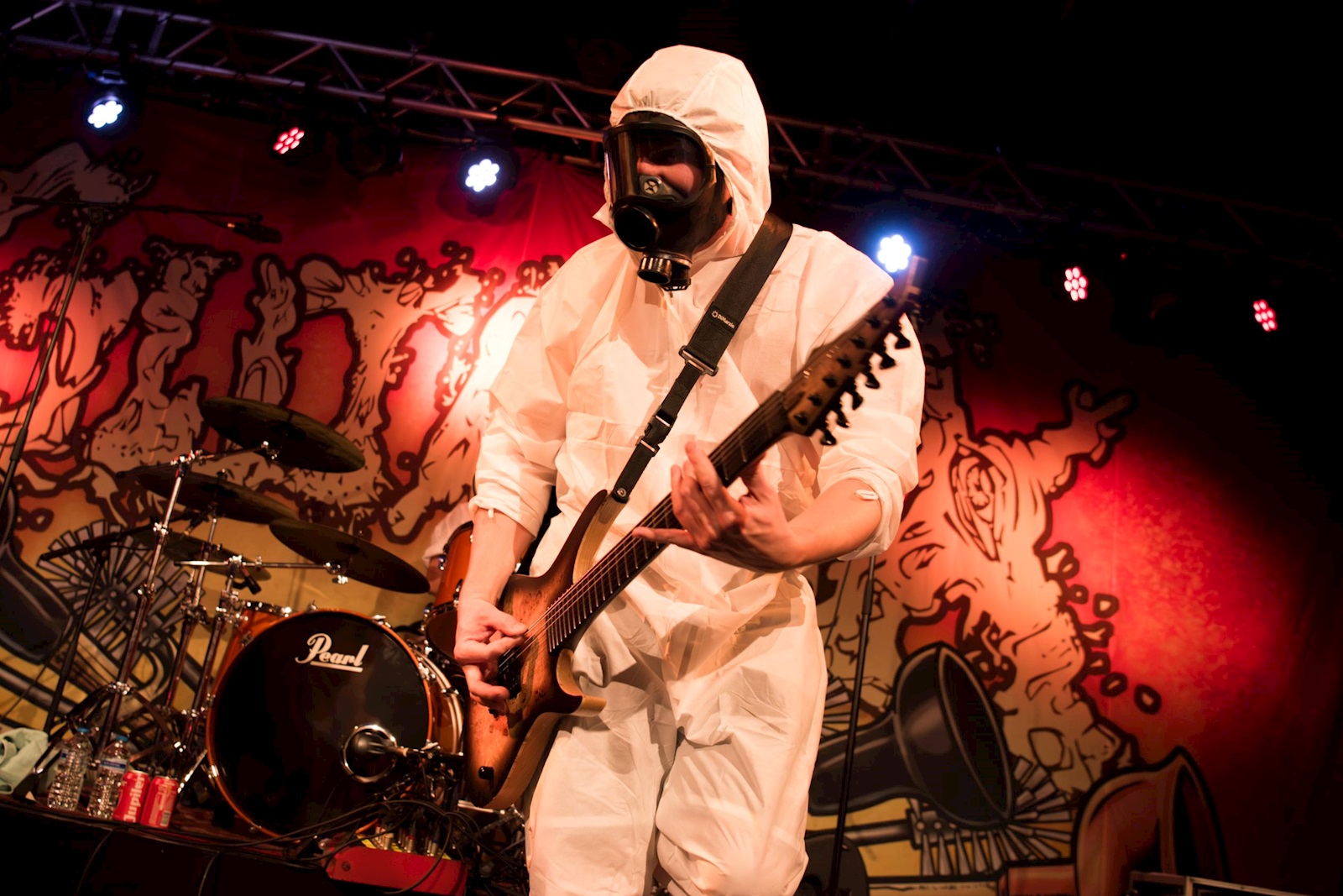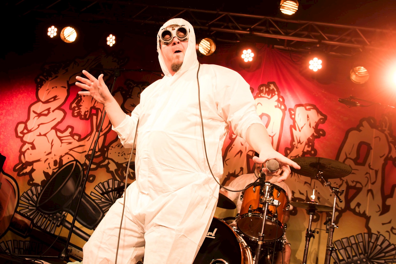 Het grote deel van de avond zal met een zeer humoristische ondertoon grove, brutale muziek brengen. De openers van de vettige feestbedoening zijn nog bloedserieus. Het Italiaanse GUINEAPIG (7) brengt goregrind waar nog heel wat leuke riffs en drumbeats in voorkomen. Vocaal is het rauw en zeer agressief, maar vooral het gitaarwerk lijkt toch wel aan te slaan bij het publiek. Met z’n drieën op het podium brengen ze live muziek zonder enige backing en die pure sound komt best goed door.