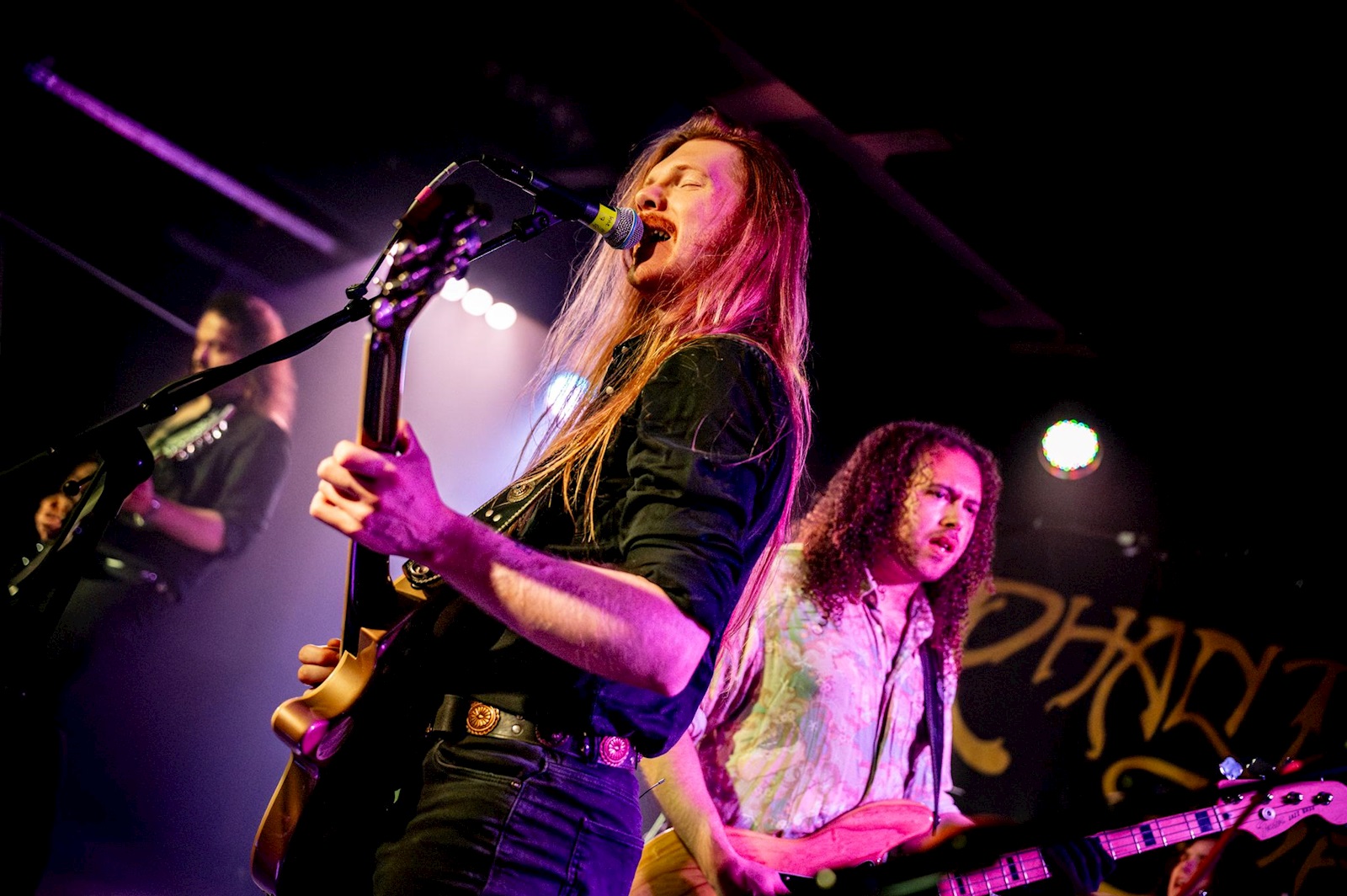 Voorafgaand aan de show konden we moeilijk inschatten hoe populair deze line-up zou zijn. We waren dan ook aangenaam verrast toen we de club van De Verlichte Geest binnenstapten, want die was aardig gevuld. Zo’n honderd mensen hadden toch de weg naar dit optreden gevonden, wat voor een dinsdagavond zeker niet slecht is. De vroege vogels zien het Spaanse PHANTOM SPELL (8) meteen prima uit de startblokken schieten. Wat ooit startte als een project van frontman Kyle McNeill (Seven Sisters), groeide ondertussen uit tot een ware band. Afgelopen zomer bracht Phantom Spell met ‘Heather & Hearth’ nog hun tweede album uit. Van die plaat worden vanavond de meeste nummers gespeeld. Op een geniale manier weet het vijftal heavy metal met progressieve invloeden te combineren. Bij momenten doet het allemaal wat denken aan Uriah Heep, met dank aan het keyboard dat op sommige nummers heel nadrukkelijk aanwezig is. Toch stoort het helemaal niet. Dat dit de eerste show van de tournee is, blijft wel nog wat zichtbaar. Maar desondanks vormt Phantom Spell een prima opener.