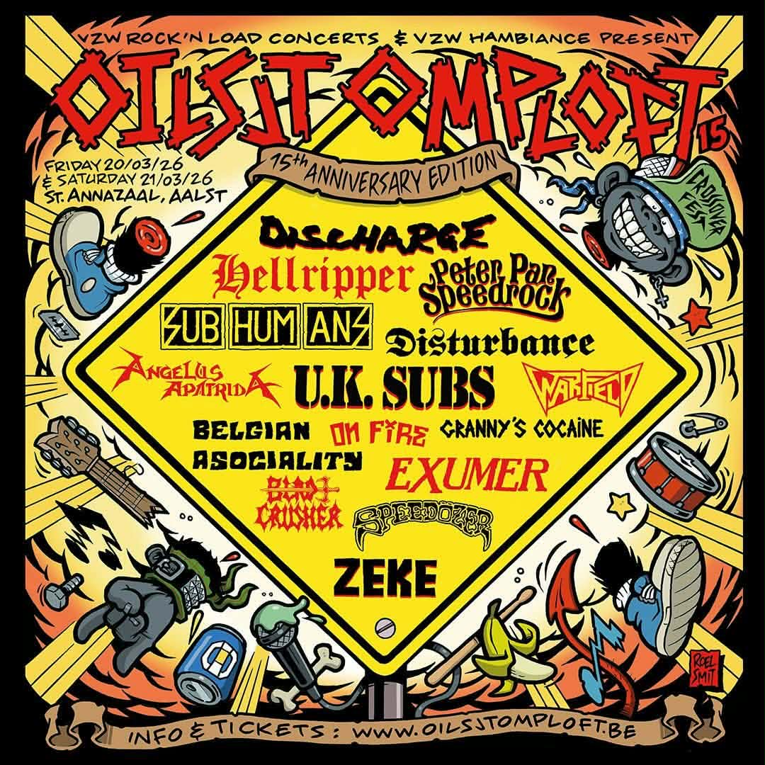 Op zaterdag 21 maart is het de beurt aan GRANNY’S COCAINE, BLADECRUSHER, WARFIELD, SPEEDOZER, SUBHUMANS, HELLRIPPER, PETER PAN SPEEDROCK, ANGELUS APATRIDA, DISCHARGE en headliner EXUMER.