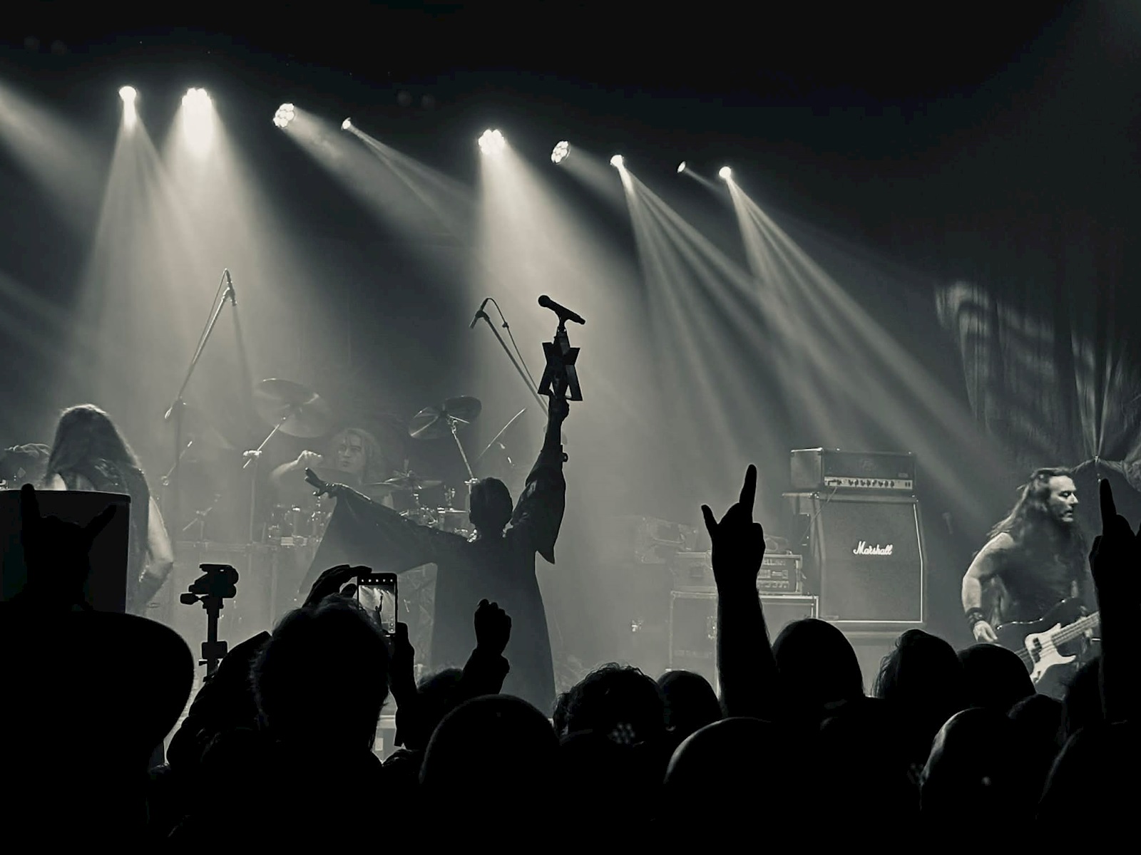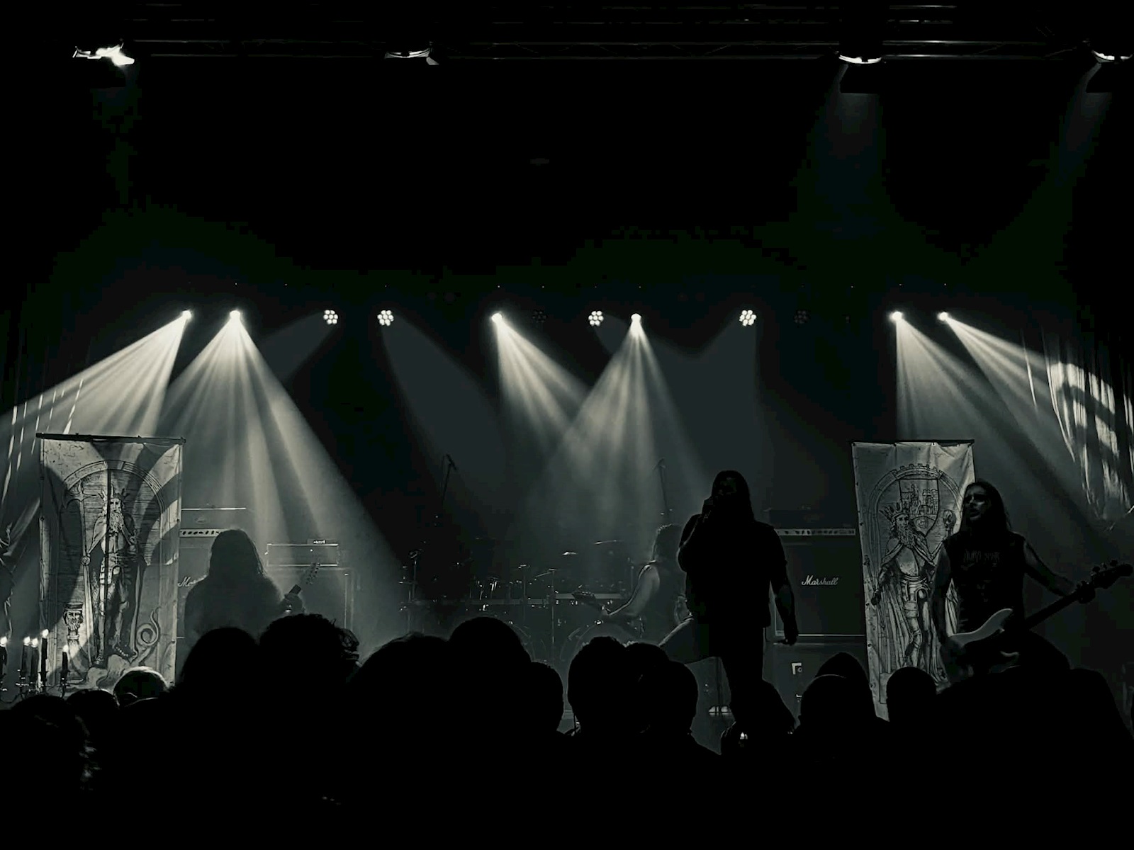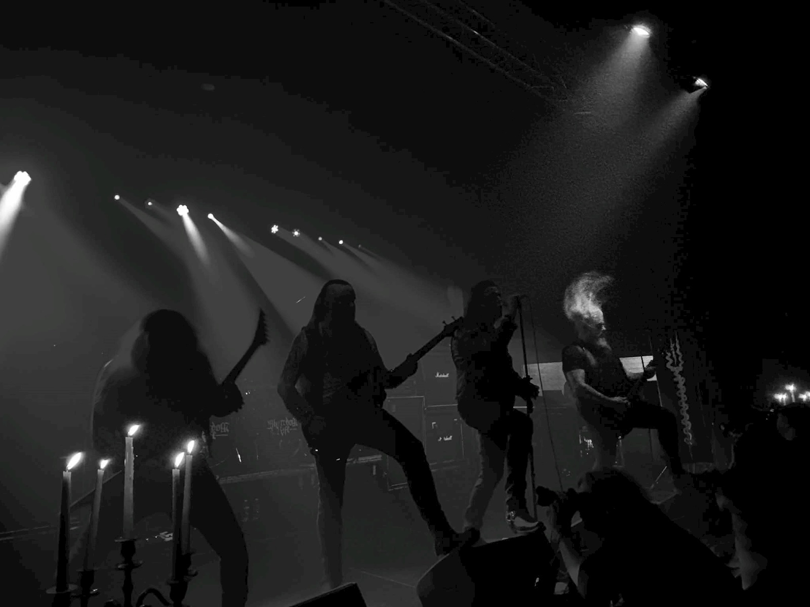 Bij het Zweedse MALAKIM (9) mag het dan weer allemaal net iets atmosferischer zijn. Zij doen muzikaal denken aan hun landgenoten van Watain en lijken daar voor hun show ook wel de mosterd te hebben gehaald. Geen vuur dit keer, maar wel kaarsen en wierook. Zij brachten eerder dit jaar hun tweede album ‘And In Our Hearts The Devil Sings’ uit, een knappe plaat waarvan de nummers hier vanavond nog intenser lijken binnen te sijpelen. Al is het vooral ‘Hammer Of Satan’, van hun eerste album, dat blijft hangen. Wat een sterke liveband!