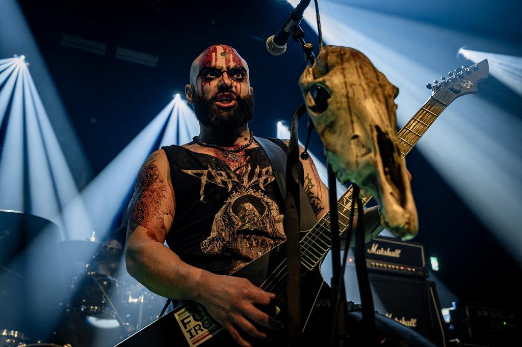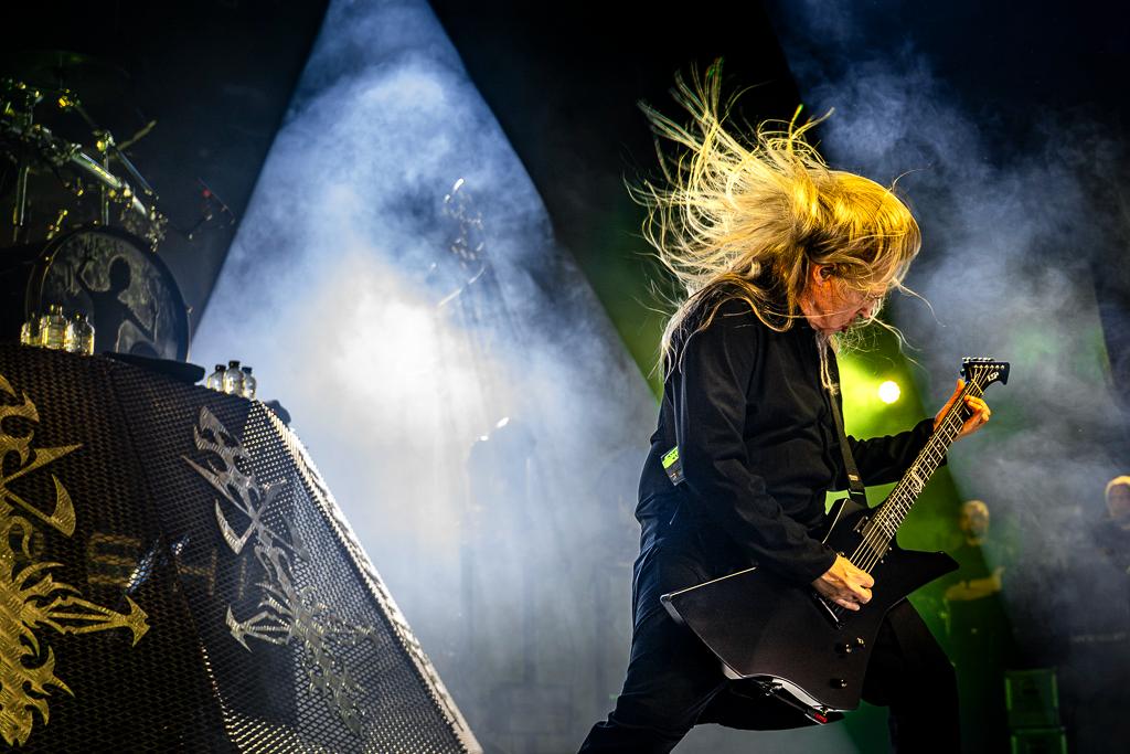 We waren nauwelijks bekomen van de barrage die Terrorizer op ons had afgevuurd of de volgende lading oude rotten kwam ons een extra pandoering geven. POSSESSED (9) stond zoals steeds met enorm veel goesting op het podium. Zanger Jeff Becerra mag dan in een rolstoel zitten, stilzitten doet ‘ie niet. Na de spits af te bijten met het vinnige ‘The Eyes Of Horror’, gevolgd door ‘Tribulation’ en het recente ‘Demon’, werden we veertig jaar mee teruggenomen in de tijd. Centraal stond namelijk hun fantastische debuut ‘Seven Churches’, dat door de decennia heen talloze black en death metalbands inspireerde en zelfs de term ‘Death Metal’ lanceerde met de gelijknamige song, die natuurlijk intens meegebruld werd! Iedereen ging compleet uit zijn dak bij het horen van deze resem klassiekers, zelfs de mensen die toen nog niet geboren waren ... Wat trouwens ook nog maar eens opviel, is dat dit niet zomaar primitieve death/thrash songs zijn, maar dat ze eigenlijk enorm complex en vernuftig in elkaar zitten. Eén minpunt: na deze verpletterende set kon er eigenlijk niets meer hieraan tippen!